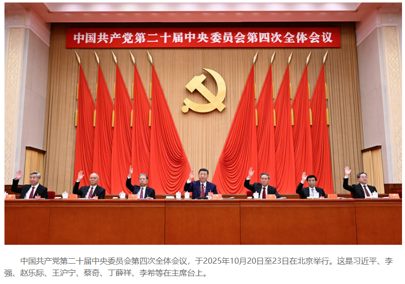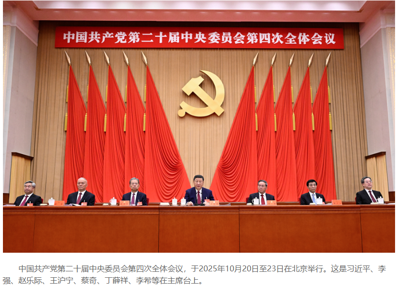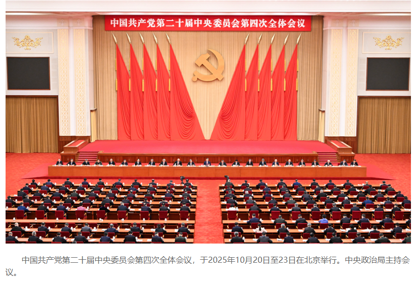 中国共产党第二十届中央委员会第四次全体会议,于2025年10月20日至23日在北京举行。