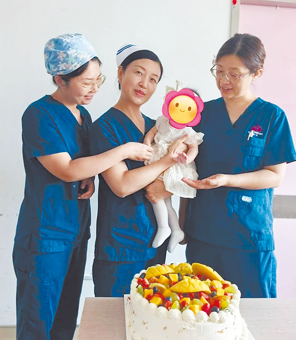 NICU医护人员一起为安安唱起生日歌,一年前握着暖箱的小手如今正抓着蛋糕上的草莓。健康成长的背后是孩子、爸爸妈妈、医护们的共同努力。