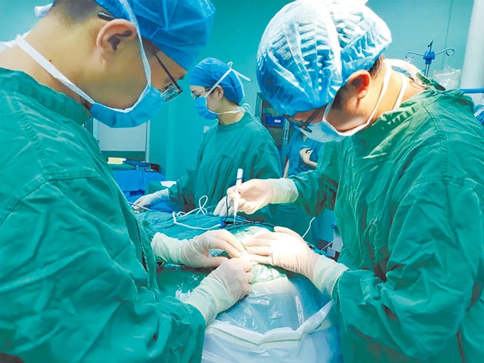 此次手术由科室于海涛团队主刀,并在郑州大学第三附属医院神经外科主任单峤的指导下完成。颅骨凹陷性骨折复位对精度和速度要求更为严苛。医疗团队凭借丰富的神经外科手术经验,精准施治,成功复位骨折部位,整个手术仅用时一个多小时。