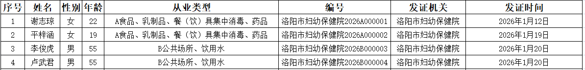 洛阳市妇幼保健院从业人员健康检查合格证办理公示人员明细