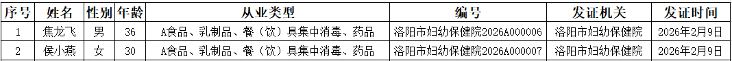 洛阳市妇幼保健院从业人员健康检查合格证办理公示人员明细