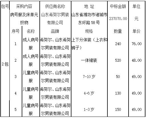 2、采购内容:病号服及床单元织物