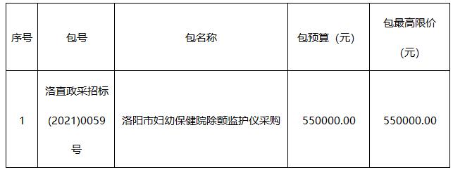 2、项目名称:洛阳市妇幼保健院除颤监护仪采购