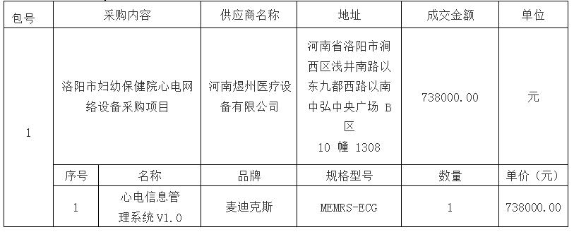 2、项目名称:洛阳市妇幼保健院心电网络设备采购项目