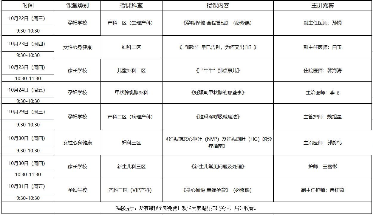 2025年10月22日—2025年10月31日“三校一中心”课程安排